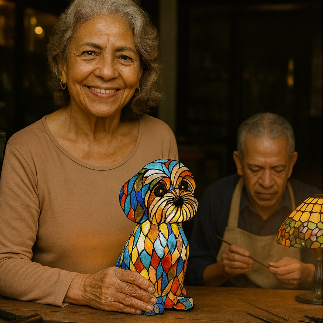 "Quando liguei minha luminária pela primeira vez, fiquei arrepiada. As cores, o brilho, o jeito que ilumina o ambiente… parece uma obra de arte feita com carinho. Deu uma vida totalmente nova à minha sala. Foi a melhor compra que fiz esse ano!"